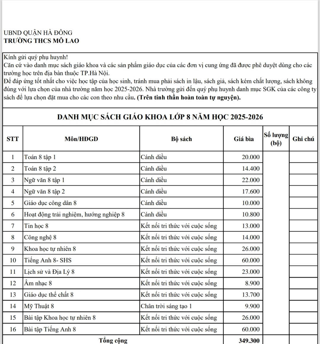 Thông báo tuyển sinh lớp 6 năm học 2025-2026